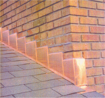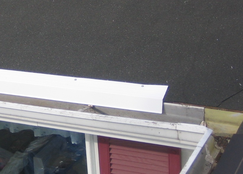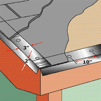 Drip edge flashing helps keep water from wicking back under the shingles. Drip edges are corner-shaped metal strips that nail along the edges of the roof. They allow water from the roof to run cleanly off the edge. Without a drip edge, water may run down the side of the fascia and siding - causing stains and eventual damage. The drip edge also supports the part of the shingle that extends past the decking.